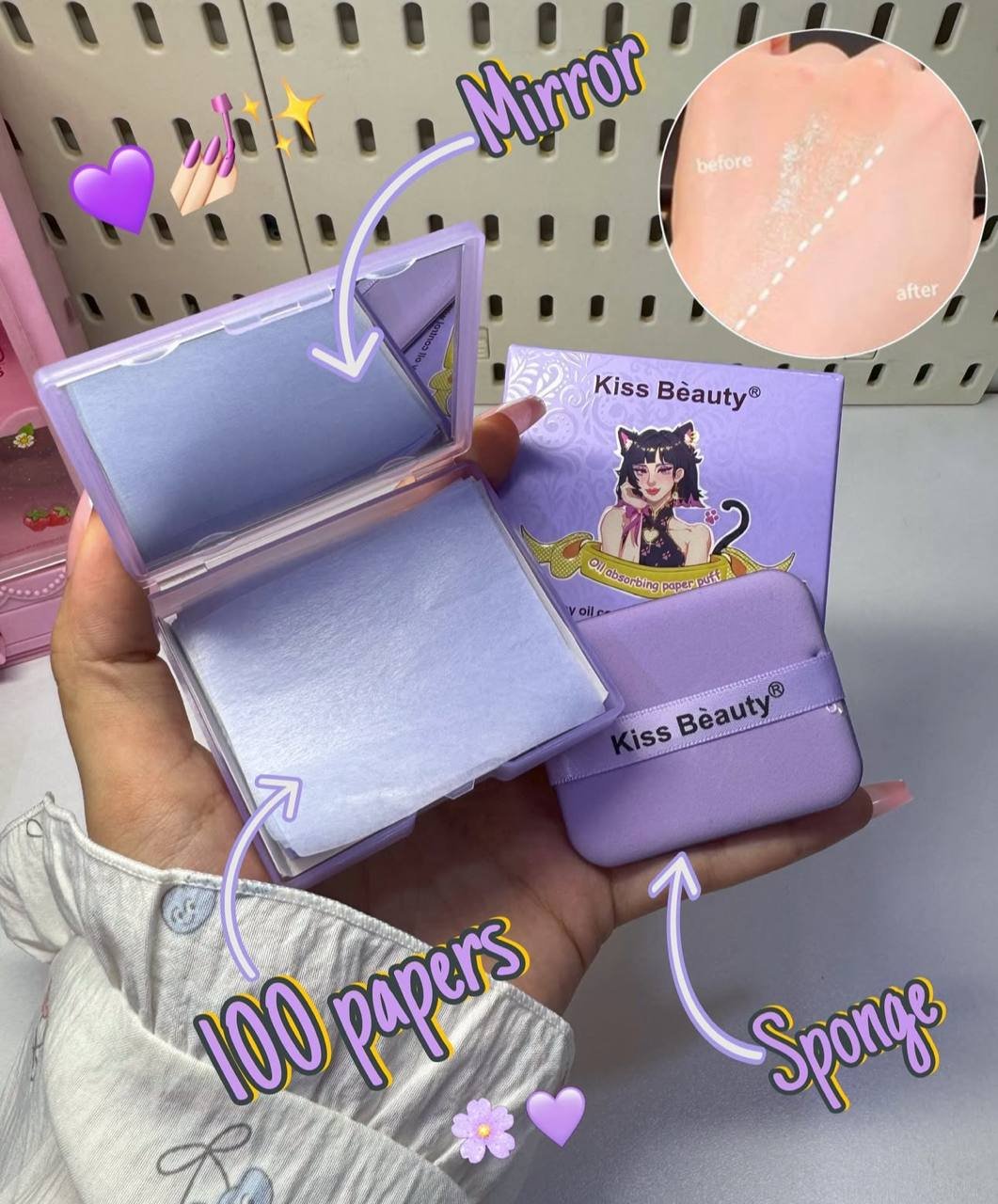 Papeles absorbentes, Elimina el exceso de grasa al instante, dejando la piel mate y fresca sin arruinar el maquillaje. 💗